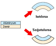 Farklı genleşmelere sahip metal çiftleri ısıtılırsa ya da soğutulursa bükülme meydana gelir.