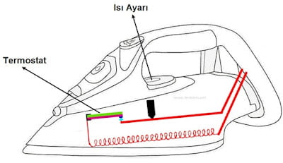 Ütü içindeki termostat sıcaklık ayarı yapar