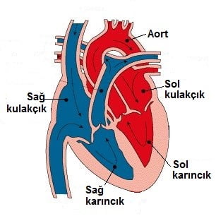 • Kalbin sağ tarafında kirli, sol tarafında temiz kan bulunur.