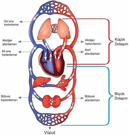 • Küçük kan dolaşımında kan, kalp ile akciğer arasında dolaşır.