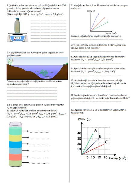 6.Sınıf Yoğunluk Çalışma Kağıdı PDF indir