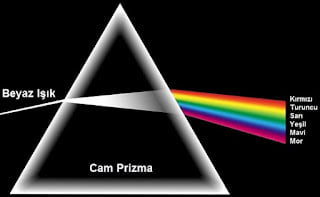 Beyaz ışık prizmadan geçirilecek olursa kendini oluşturan renklere ayrılır.