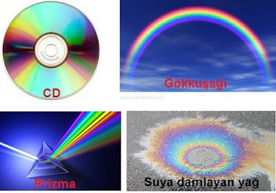 Beyaz ışığın renklerine ayrılmasına (ışık tayfı) örnekler
