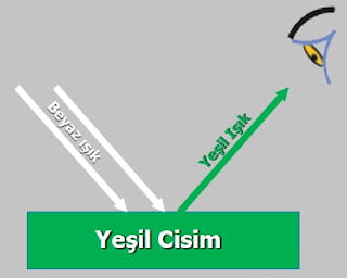 Beyaz ışık altında yeşil cisim yeşil görülür