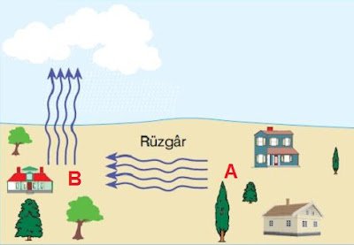 Yukarıdaki resimde A bölgesinde yüksek basınç, B bölgesinde alçak basınç vardır.