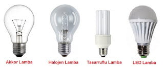 Örneğin odamızı aydınlatmak için kullandığımız 75 Wattlık bir akkor lambanın yerine, denk parlaklıkta 53 watt halojen lamba, 18 watt tasarruflu lamba veya 12 Wattlık bir LED lamba kullanılabilir.