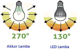 Floresan ve akkor lambalarda ışık istenilmeyen yönlere de gitmektedir. LED lambalarda ışık istenilen yönde yayıldığı için aydınlanma daha iyi sağlanır ve ışık kirliliği de azaltılmış olur.
