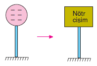 Negatif yüklü cisim ve nötr cismin etki ile elektriklenerek, nötr cismin pozitif yüklenmesi