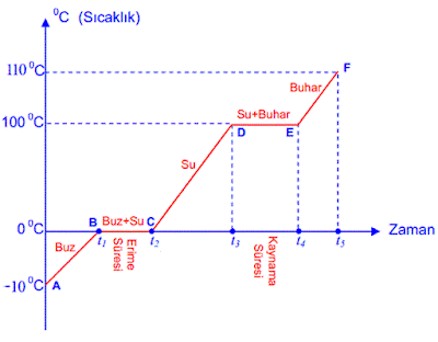 3. C-D noktaları arasında sudur. Suyun kaybettiği ısı suyun sıcaklığını azaltır.