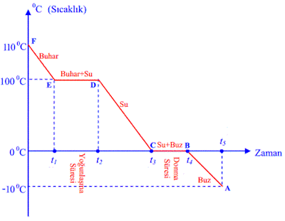 2. D-E noktaları arasında su ve buhar karışımıdır. Kaybedilen ısı buharın yoğuşmasına neden olur. Sıcaklık sabittir.