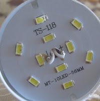 LED lambanın içinde küçük LED’ler bulunur. Aşağıdaki resimde kapağı çıkarılmış 5 Watt değerindeki lambada, 10 tane küçük LED görüyorsunuz.